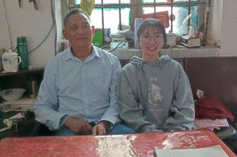 (图1、2-学生党员正在采访老党员)