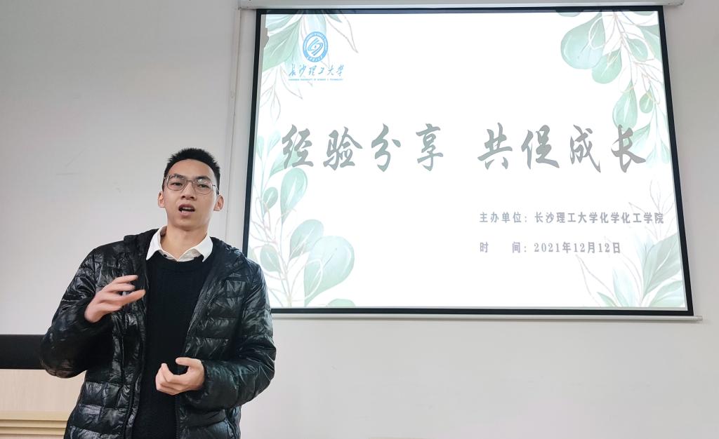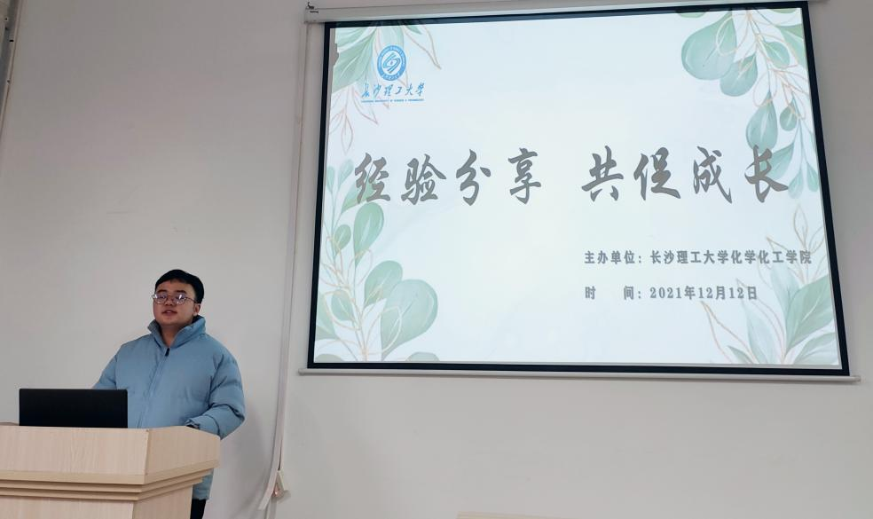 2021年12月12日早上十点,化学化工学院在云塘校区工三B210教室成功举办了研究生学术分享会,会议由学院研究生会副主席李鹏云主持,主讲人分别是蒋峥瑾和柳辉鸿,部分21级研究生参加此次分享会。