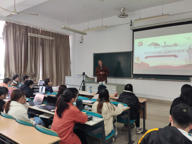 思政微课上,导师们与学生进行了深入的交流。曹忠提出,新时代、新挑战,同学们要牢记长征精神,在攀登科研高峰的“长征路”上,提升专业素养,掌握专业知识,化学报国,实现人生价值。张跃飞指出长征精神的核心是不怕牺牲、艰苦奋斗、百折不挠的精神。作为研究生,要深入学习长征精神,在工作学习中要做到不畏艰难,顽强拼搏。朱志平表示以史为鉴、开创未来,只有铭记历史才能深入了解过去,全面把握现在,正确创造未来。研究生要牢固树立民族意识,继承红军对理想矢志不渝、对革命事业锲而不舍的奋斗精神。