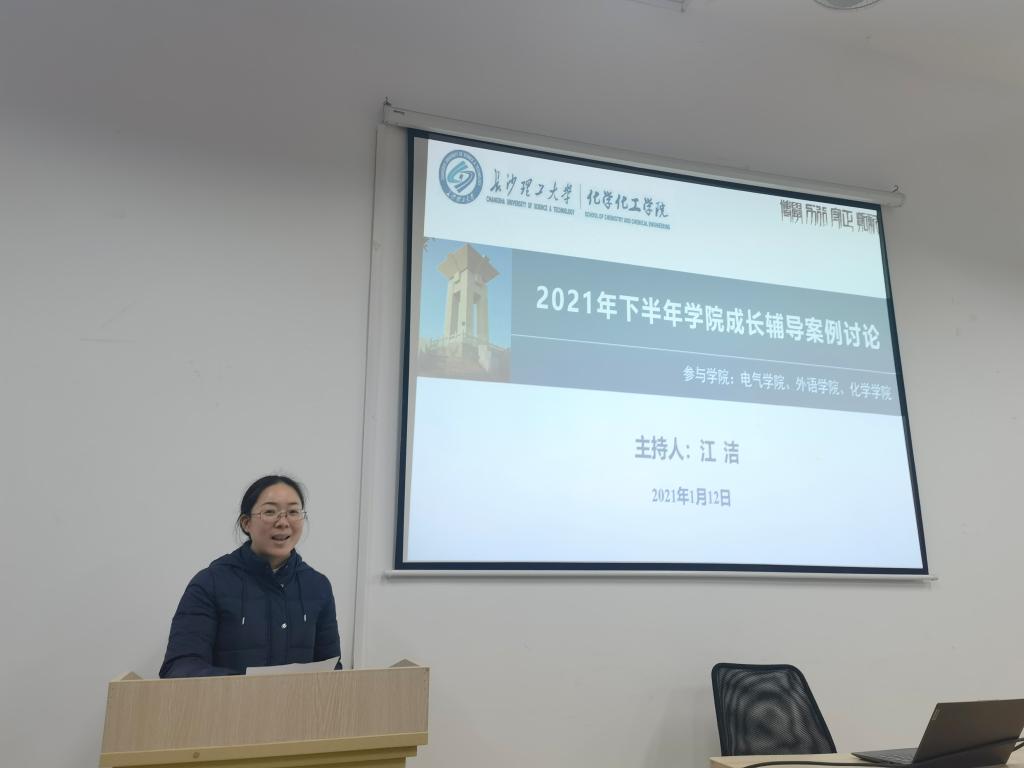 1月12日下午,化学、电气、外国语学院案例交流会于工科三号楼B210召开,会议内容为学院成长辅导案例讨论,会议由化学化工学院心理辅导员江洁主持,心理中心主任龚勋、心理中心老师贺子京出席,电气学院党委副书记任艮丰及全体辅导员、外国语学院党委副书记王双及全体辅导员、化学学院党委副书记陶双及全体辅导员参与。