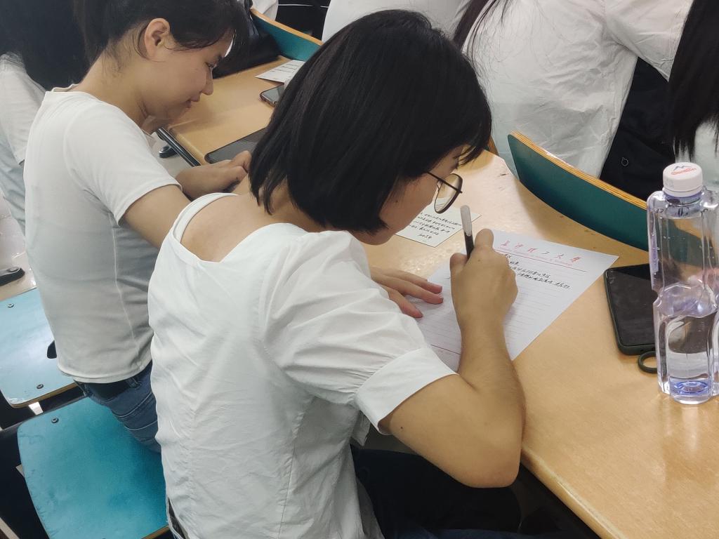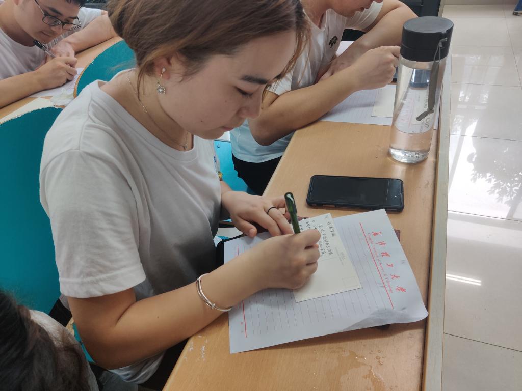 活动伊始,以“击鼓传花”的形式,邀请“幸运儿”分享他与长理独一无二的回忆,将现场氛围推向高潮。应化支部艾雨晴同志谈到:非常感谢化学学院应化党支部,感谢支部所有同志,能够与这些的同志一起工作、一起进步是一件非常幸福的事情。接着,工作人员向每位毕业生党员分发明信片以及信纸,以笔墨绘初心,在母校留下属于自己一份独一无二的印记,毕业生党员用文字表达了对母校的感恩、对学弟学妹的祝福、许下自己作为党员的一个承诺。食品支部李亚鹏同志表示:在今后的工作岗位中当将牢记党员身份,将批评与自我批评常态化,常思常学常做,秉持“我是党员我先上”的责任担当,定不辜负组织的培养。