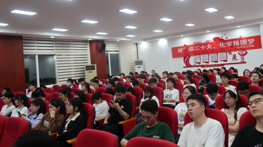 近日,为了学习了解红船精神的来源及其具体内涵,深入领会开天辟地、敢为人先的首创精神,坚定理想、百折不挠的奋斗精神,立党为公、忠诚为民的奉献精神。化学化工学院在工科3号楼A320举办了以 “研学二十大,奋进新征程”为主题的宣讲活动。研究生宣讲团肖碧清、孙淑雅主讲,化学化工学院全体一年级研究生参加。