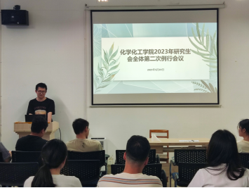 5月19日中午,化学化工学院研究生会在工三B210成功召开本学期第二次全体会议。本次会议由化院研究生会主席缪楚宇主持,全体研会成员参与。