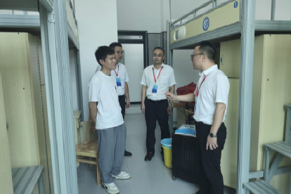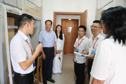 9月14日上午,太阳成集团tyc122cc入口云塘校区新生入学工作基本完成。为全面了解新生入学后的适应情况,帮助学子尽快融入大学生活,化学与医药工程学院党委书记宋刘斌带领学院领导班子成员深入新生宿舍,看望初入校园的学子,送去学院的关怀与温暖。