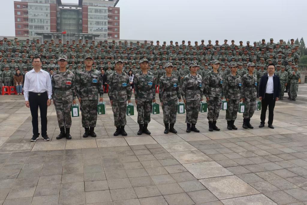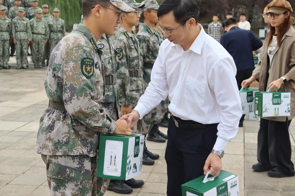 随后,院领导班子成员及关工委老师一同向教官代表和新生代表送上了精心准备的慰问物资。一份份慰问品承载的是学院对全体参训人员的深切关怀,极大地鼓舞了军训队伍的士气。