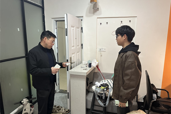 走访过程中,李家春重点检查了学生住所的消防设施、用电安全及周边环境,详细询问学生的日常通勤、生活保障及学业进展,并针对部分租住房存在的安全隐患提出整改建议。他叮嘱学生:"安全是学习和生活的前提,要时刻提高防范意识,保持与辅导员、家长的沟通,确保遇到困难时能及时获得帮助。"