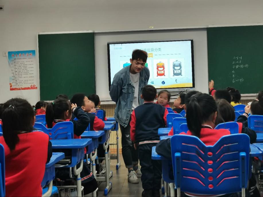 宣讲课上,志愿者们采取各类图片、动漫视频和模拟演示相结合的方式,对垃圾如何分类、垃圾运转和处理、垃圾有何危害等进行了形象的展示,用生动的方式介绍了垃圾的种类以及垃圾分类的好处,让大家了解到了垃圾分类的重要性。志愿者何瑶瑶谈到,“为了提升课堂讲授效果,我采取查阅相关知识、到长沙生活垃圾分类社会宣传教育基地方式全面学习垃圾分类知识,同时,虚心请教其他师范生同学,反复打磨课件、提升授课技巧。小朋友们现场热情的互动是对我充分的肯定,鼓励着我继续投身志愿宣讲活动中。”