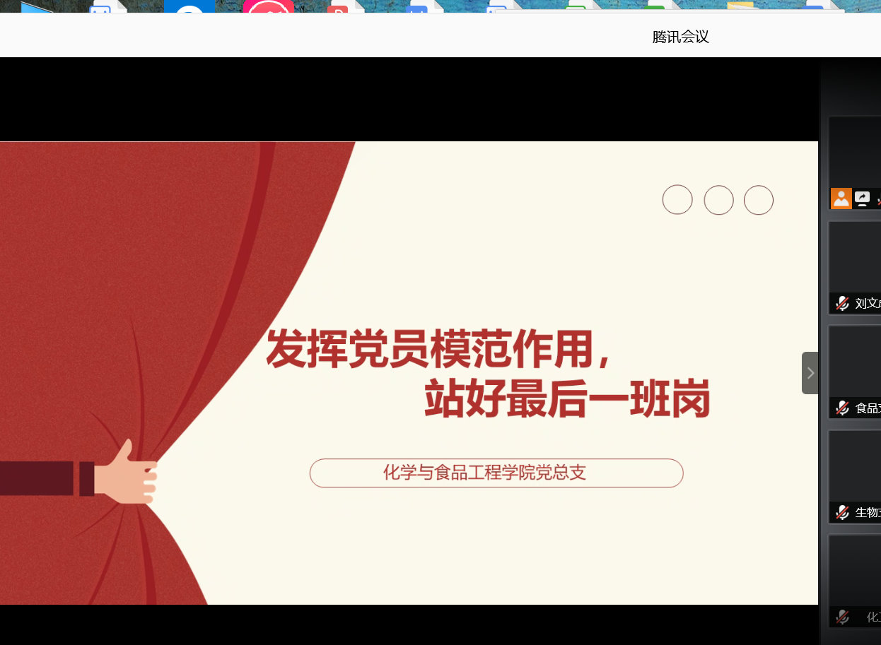 毕业之际,为引导各毕业学子培养文明离校意识,树立文明离校良好风尚,化学学院于6月9日晚召开“发挥党员模范作用,站好最后一班岗”线上主题教育活动,要求各支部党员牢记党员身份意识,积极发挥党员模范作用,不忘初心,不断前行。