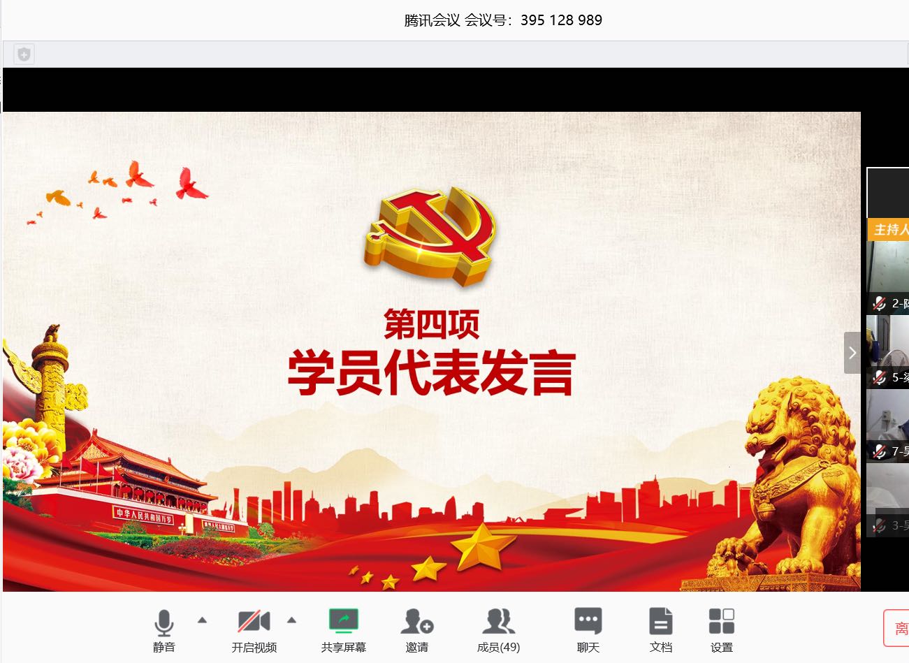 4月20日晚18:00,化学学院、外国语学院通过腾讯会议成功开展第二十一期预备党员培训班开班典礼暨第一次党课,化学学院党建辅导员刘文成以及培训班全体学员出席。