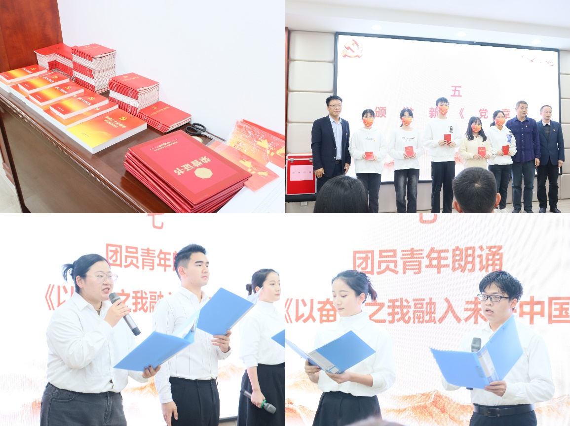 接下来,学院领导为全体党员颁发新《中国共产党章程》,希望全院学生党员以学习贯彻党的二十大精神为契机,兴起学习党章、遵守党章、贯彻党章、维护党章的热潮,筑牢青年信仰之基,勇担未来发展重任。随后,青年团员代表带来朗诵作品《以奋斗之我融入未来中国》。诗歌激励青年紧扣时代脉搏,自信自强、守正创新、踔厉奋发、勇毅前行,为全面建设社会主义现代化国家、全面推进中华民族伟大复兴而不懈奋斗。