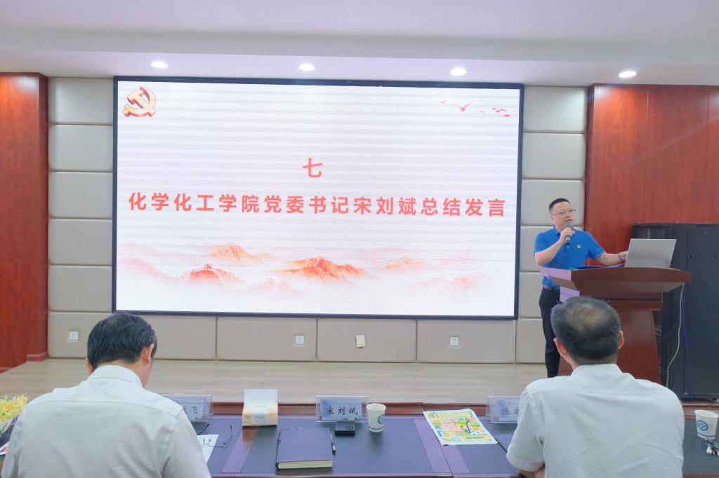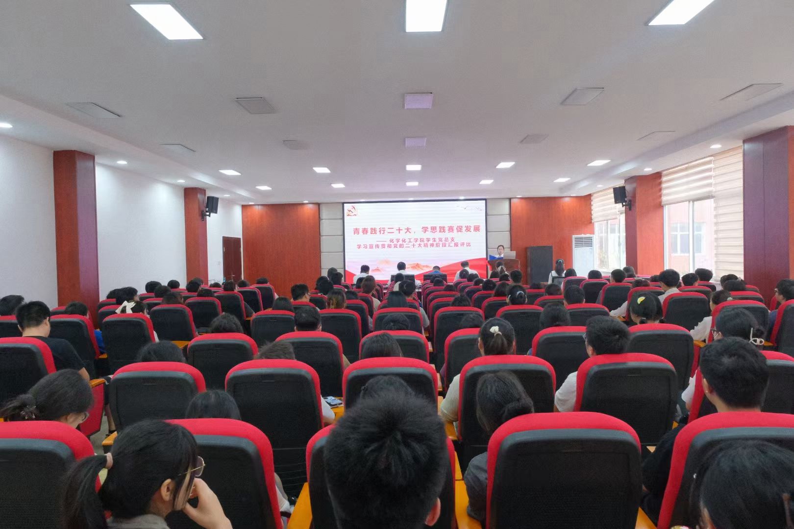 在全国上下深入学习贯彻党的二十大精神之际,太阳成集团tyc122cc入口化学化工学院学生党总支梳理凝练近半年来各支部优秀的工作方法和学习成果,用实际行动持续提升基层党建的标准化、规范化、品牌化水平,推动党支部之间互学互鉴,为各支部赋能。6月6日,化学化工学院在工三A320开展“青春践行二十大,学思践赛促发展”的学习贯彻党的二十大精神阶段汇报评比活动,全体学生党员参加,学院领导班子和相关老师出席,会议由学生党总支宣传委员胡东妮主持。