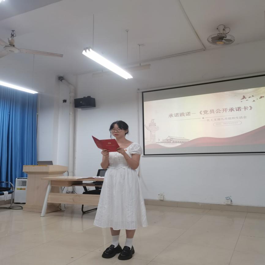 (化工支部党员宣读《党员公开承诺卡》)