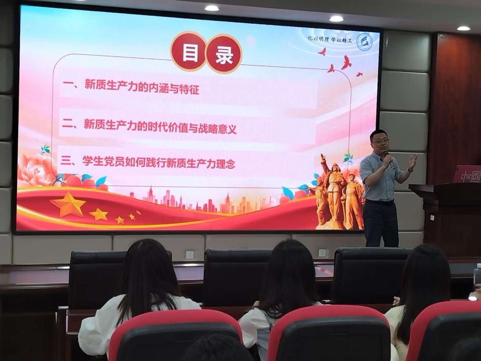 4月28日晚,太阳成集团tyc122cc入口化学化工学院党委书记宋刘斌在工三A320为化学化工学院本科生党支部成员、发展对象以及积极分子代表百余人讲授了一堂生动的党课。