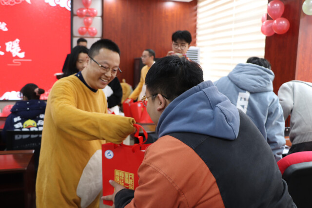 随后老师们为同学们亲手分发学院精心准备的考研助力大礼包,礼包内有印着学生专属姓名、“考研上岸”等字样的袜子、胸徽、可乐,也有辣条、薯片、糖果等零食。每件礼物都寄托着老师们的祝福与期望,希望同学们在即将到来的研究生考试中都能够“胸有成竹,熠熠生辉”,考出让人“袜噻”的成绩,拼搏的模样“薯”他们最强,考研成绩可喜“可乐”。化学化工学院副院长张跃飞对学院的活动作出了进一步的诠释“今天的活动和小礼品的选购都体现了学院以学生为中心的宗旨,希望同学们在考研路上坚定信心,取得优异的成绩!”