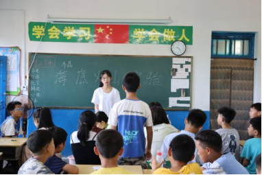 李晶表示:“第一次以一名老师的身份站在讲台上,面对着台下孩子们一张张渴望知识的面孔,我的心情忐忑而又激动。在课堂上,同学们积极回答着我的提问,最令我印象深刻的是一名身穿蓝色上衣的初一男孩,他的回答能让我看出他的学习基本功十分扎实。少年智则国智,新一代的青少年象征着祖国明日的希望。在这里,我们团队撒下了一颗颗象征着化学的种子,希望在未来的日子里,他们能够发光发亮。”