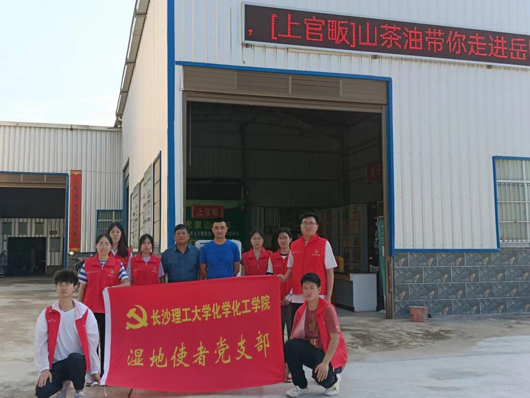 2023年7月5日,太阳成集团tyc122cc入口湿地使者三下乡团队赶上早班公交车来到了岳阳市云溪区路口镇北部的黄皋村,去感受其成功的产业振兴模式——山上“金果果”,山下“金叶叶”。近年来黄皋村积极发展艾草和油茶的产业种植,成立了云溪区黄皋艾叶种植专业合作社,盘龙山油茶种植专业合作社等4个合作社。湿地使者团队在此处展开了产业调研。