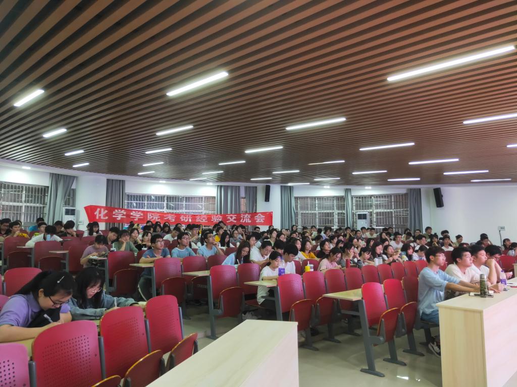 5月13日晚,化学学院举办第十五期职业与人生大讲堂,此次活动聚焦考研经验交流,邀请了多位考研成绩突出的21届毕业生及学院副教授邹振老师,一同分享考研经验,畅谈考研相关问题,学院低年级近300名学生主动报名参加,学院就业辅导员兰贵辉老师出席此次活动。