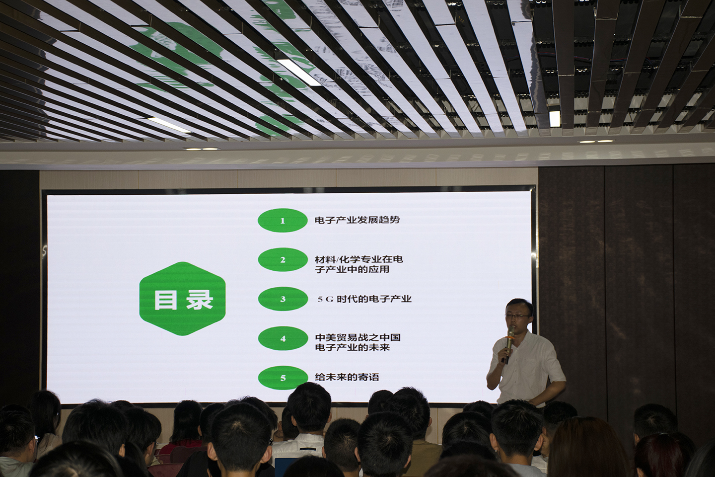 讲座伊始,陈华对讲座的主要内容以及兴森科技做了简单介绍,并向精心准备此次活动的公司领导和工作人员表达了诚挚的感谢。随后,胡梦海以“为什么说材料/化学是两大硬核专业”为主题,从电子产业发展趋势、材料/化学专业在电子产业中的应用、5G时代的电子产业、电子产业的未来四个方面分别详细阐述了电子产品组成结构、疫情对各产业的影响及封装基板市场等电子产品目前发展趋势等内容。随后,他结合自己的工作以及目前企业的现状做了个人职业发展的经验介绍,鼓励学生增强自我管理能力、动手实践能力及逻辑思维能力,树立务实作风,投身到关键材料制备工艺工作中,助力中国从制造业大国向制造业强国转变。最后,兴森科技的人资负责人为学生们宣讲关于“兴森启航”暑期实习夏令营的相关内容。(文/兰贵辉 图/陈鑫林 审/陶双)