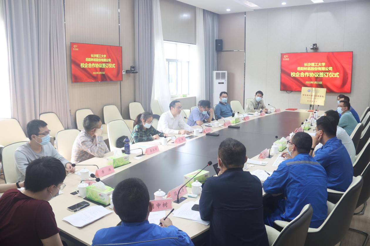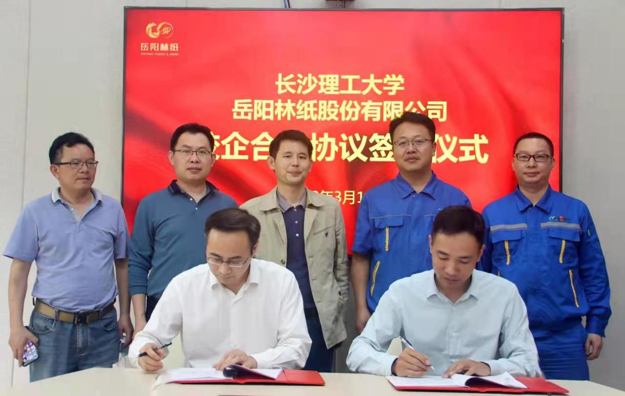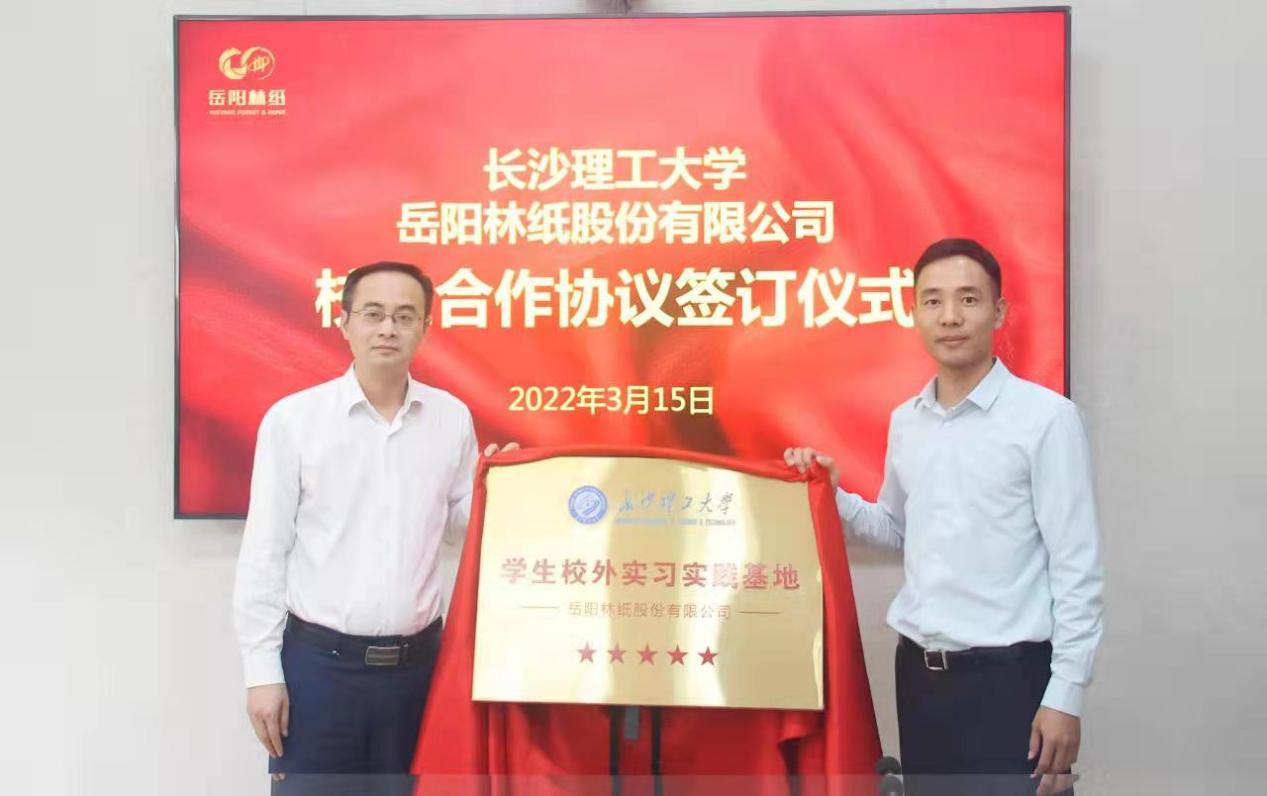 2022年3月15日,太阳成集团tyc122cc入口化学化工学院和岳阳林纸股份有限公司在岳阳举行校外实习基地协议签订和揭牌仪式,化学化工学院副院长陈启杰与岳阳林纸副总经理尤昌善签订合作协议,并共同为校外实习基地揭牌。学院轻化工程教研室全体教师,岳阳林纸分公司副总经理赵国红,总经理助理蒋华林及相关骨干参加仪式,岳阳林纸人力资源中心经理闫波涛主持仪式。