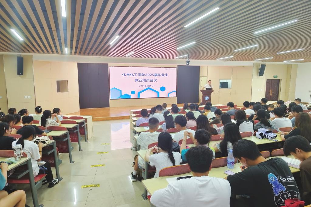 为提前谋划2025届毕业生就业工作,促进2025届毕业生高质量充分就业,9月6日下午,化学化工学院在工科三号楼A201召开了2025届毕业生就业动员大会。学院党委副书记、副院长李家春、就业专干张航出席会议,全体2025届毕业生参加,会议由张航主持。
