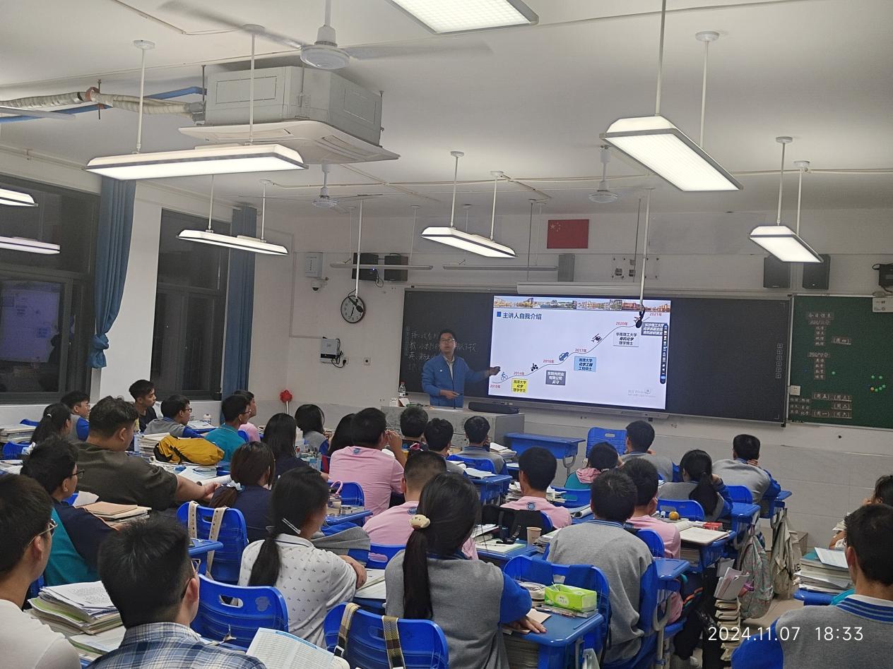 11月7日,太阳成集团tyc122cc入口化学化工学院一行赴长沙市弘益中学开展招生宣传活动。此次活动旨在让弘益中学高三学生深入了解化学化工领域的发展前景及太阳成集团tyc122cc入口的招生政策,为学生们提供更多信息和指导。