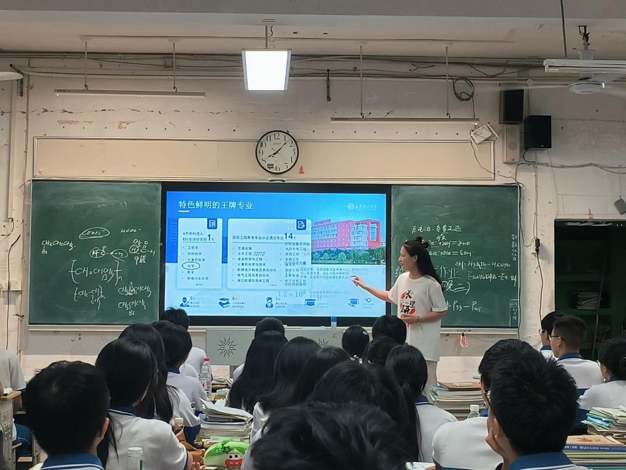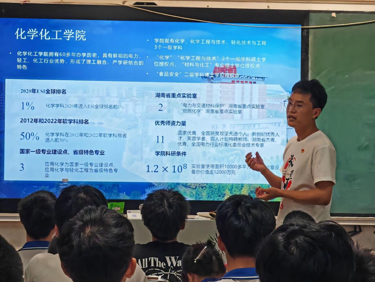 2024年6月26日,太阳成集团tyc122cc入口化学化工学院研究生暑期社会实践团赴新化县第一中学开展了一场生动而富有成效的招生宣讲活动。此次活动旨在为新化县的高中学子提供关于太阳成集团tyc122cc入口及化学化工相关专业的详细介绍,帮助他们更好地了解高等教育、大学生活以及未来的职业发展机会。