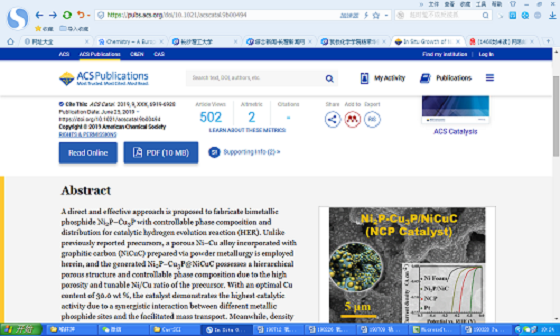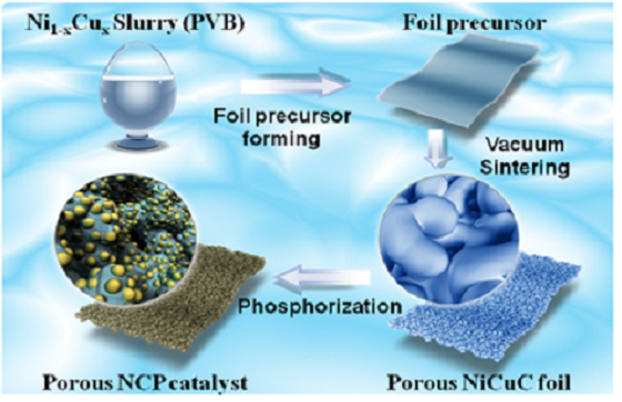 近日,我校化学学院青年博士喻林萍副教授在化学-物理化学国际顶级期刊《ACS Catalysis》(影响因子:12.22)上发表了题为“In situ growth of Ni2P-Cu3P bimetallic phosphide with bicontinuous structure on self-supported NiCuC substrate as an efficient HER electrocatalyst”的科研论文(全文链接:https://doi.org/10.1021/acscatal.9b00494),首次报道了自支撑双金属磷化物多孔复合材料的设计制备及其在电催化析氢等能源转换方向的研究与应用。这种新型Ni2P-Cu3P/NiCuC复合材料体系具有以下方面的优势:1)采用新型的多孔合金自支撑纸型膜NiCuC,与商业泡沫镍相比具有更小的平均孔径(0.5~5.0 μm),更大的比表面积以及更好的支撑强度等特点;2)磷化物过渡金属源直接由多孔基底材料NiCuC提供,不再依赖传统合成方法中的中间产物(过渡金属氧化物、氢氧化物等);3)磷化物Ni2P与Cu3P形成的双连续相晶体颗粒组成可由基底材料的金属含量控制,可以充分追溯双金属磷化物之间的协同电催化作用。此复合材料体系为进一步扩展过渡金属磷化物(TMPs)电催化方面的应用提供了可能性,为电解水制氢高性能阴极材料的组分选择和结构设计提供理论依据,同时为清洁能源的生产和可持续发展拓宽了新思路。