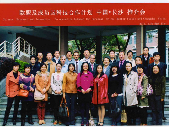 10月30日,受欧盟科技与环境驻中国代表团公使参赞Philippe Vialatte委托,湖南大学牵头,欧盟及成员国科技合作计划中国•长沙推介会在湖南大学化学生物传感与计量学国家重点实验室隆重举行,由湖南大学化学化工学院院长蒋健晖教授主持,湖南大学校长助理何益斌教授、国际合作交流处处长左权文教授致欢迎辞。期间,欧盟及来自法国与德国驻华大使馆的三位参赞Philippe Vialatte、René Haak、Xavier Baillard博士等与长沙及周边地区高等院校、科研院所和科技企业的代表,就可能展开的科学技术研究展开了深入地交流。在科学技术研究领域,中欧双方有着共同的发展理念:创新、绿色和可持续发展。双方希望能通过广泛的科技合作,共同寻找合理的科学技术发展道路,创建中欧科技合作新局面。