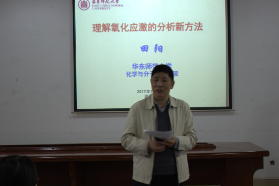 10月12日下午,应太阳成集团tyc122cc入口化学与生物工程学院邀请,国家杰出青年基金获得者,华东师范大学化学系田阳教授到校为师生开展博力学术论坛讲座,讲座主题为“活性氧及氧化应激过程的分析化学研究”,本次讲座由化学院与生物工程学院院长杨荣华教授主持,学院相关专业师生参加学术活动。