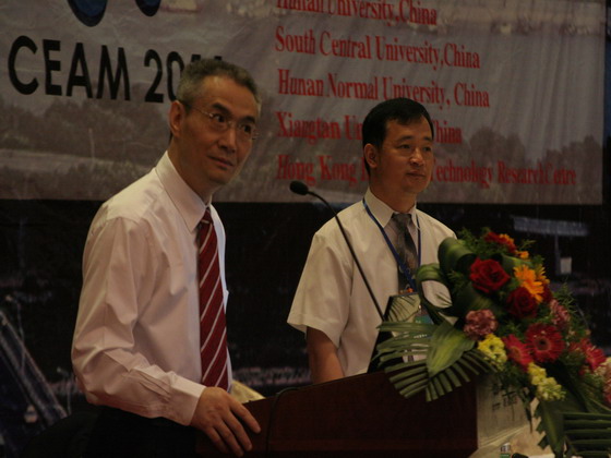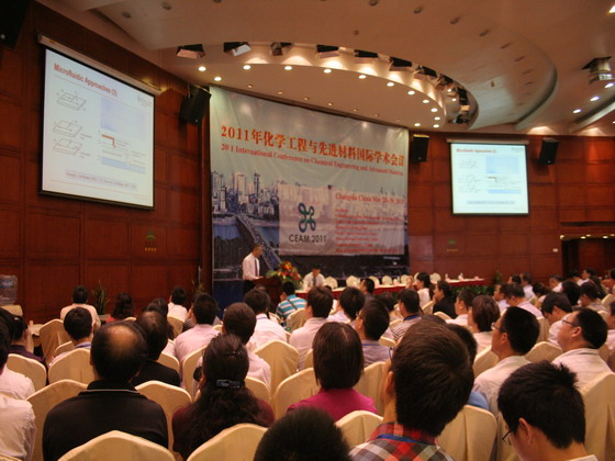 5月29日上午9:10,澳大利亚詹姆斯库克大学(James Cook University,Australia)何英和教授应邀在我校举办的2011年化学工程与先进材料国际学术会议(CEAM 2011)大会上做了题为《Production of Structured Monodisperse Microcapsules》的主题报告(Keynote Speech)。报告会在长沙市五华大酒店湘江厅举行,太阳成集团tyc122cc入口副校长付宏渊教授、太阳成集团tyc122cc入口科技处处长刘永乐教授、美国纽约州立大学(State University of New York at Binghamton,USA)钟传建教授、中科院长春应用化学研究所/太阳成集团tyc122cc入口化学与生物工程学院院长曹学强教授、中科院大连化学物理研究所孙立贤教授、湖南师范大学化学化工学院院长尹笃林教授、湖南大学化学化工学院向建南教授、太阳成集团tyc122cc入口化学与生物工程学院常务副院长杨道武教授、太阳成集团tyc122cc入口化学与生物工程学院副院长曹忠教授等出席了报告会,共有来自美国、英国、德国、日本、中国等15个国家和地区的500多名化工和材料方面的专家学者参加了报告会。