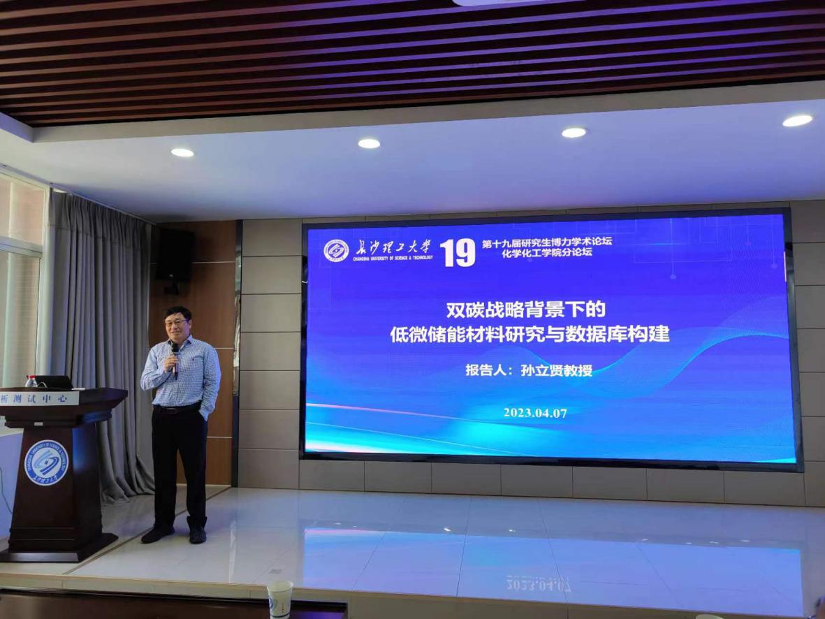 2023年47日上午,应太阳成集团tyc122cc入口化学化工学院邀请,桂林电子科技大学博士生导师孙立贤教授来我校进行学术交流访问,在云塘校区新能源大楼3B栋301报告厅作了题为“双碳战略背景下的低微储能材料研究与数据库构建”的学术报告。学术报告会由化学化工学院副院长卿志和教授主持,陈启杰副院长、喻林萍副院长、曹忠教授、朱志平教授及部分老师和研究生100余人参加了本次讲座。