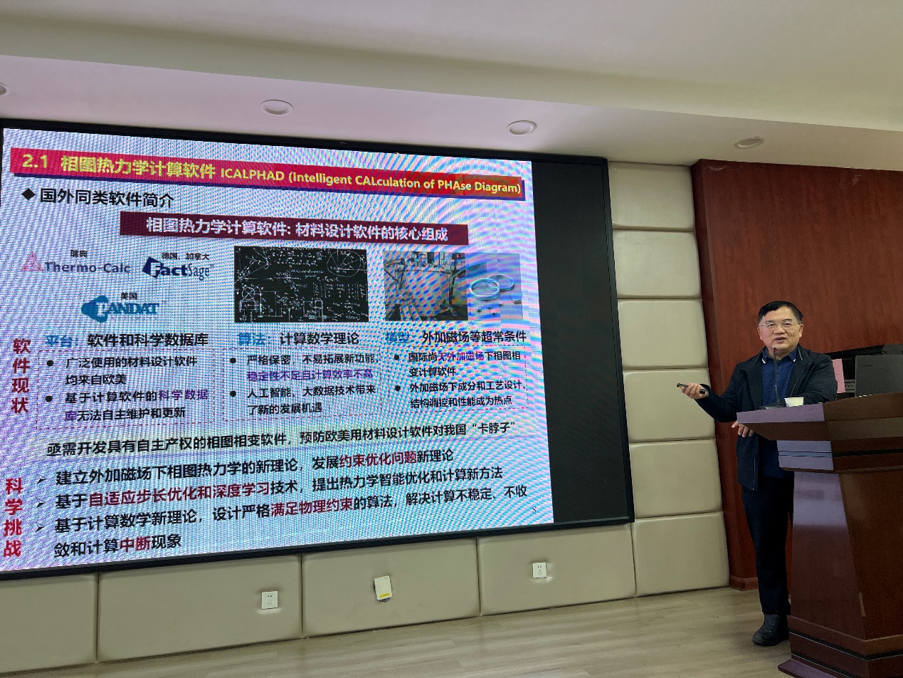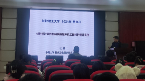 上午10:00,杜勇教授在云塘校区工科三号楼A320会议室作了题为“材料设计软件和科学数据库及工程材料设计实例”的学术报告。本次讲座由化学化工学院电力与交通材料保护湖南省重点实验室主任曹忠教授主持,化学化工学院副院长卿志和教授、化学/化工相关专业教师和研究生百余人参加了交流会。首先,杜勇教授介绍了团队在相图相变软件、科学数据库及工程材料智能设计方面的研究成果,并展示了跨尺度计算在硬质合金、耐磨涂层和铝合金研究方面的几个实例。杜勇教授在报告中,强调了作为工程材料计算设计的核心——软件和科学数据库的重要性,详细阐述了材料智能设计软件和材料智能设计数据库的研究与构建,同时结合材料设计实例进行深入剖析,让在场全体师生受益良多。