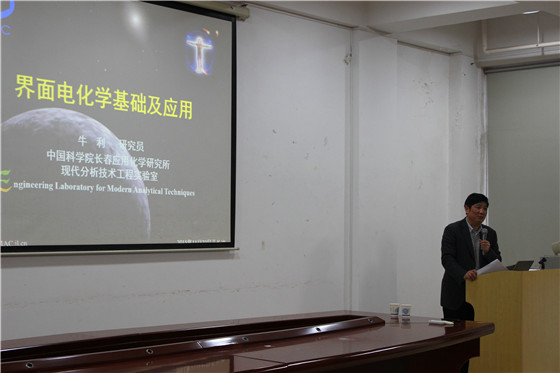 11月24日上午10:00, 应化学与生物工程学院杨荣华院长邀请,国家杰出青年科学基金获得者,中科院长春应用化学研究所牛利研究员来我校讲学, 在云塘校区工科三号楼A-320会议室作了题为“界面电化学基础及应用”和“基于智能手机的生物传感研究”两个方面的专题学术报告,我校相关学科的老师和研究生、本科生共百余人聆听了牛利研究员的精彩报告。