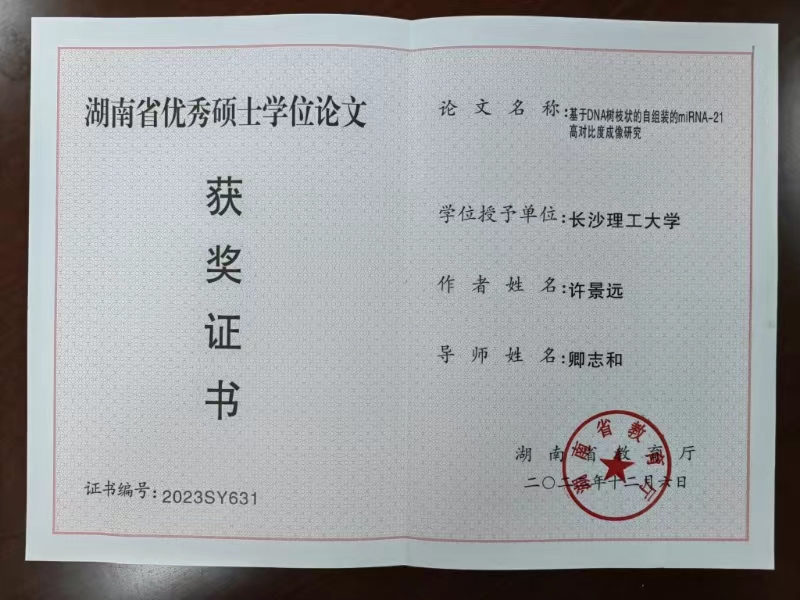 颁奖部门:湖南省人民政府学位办/湖南省教育厅
