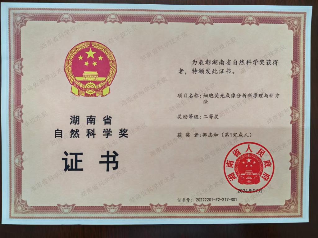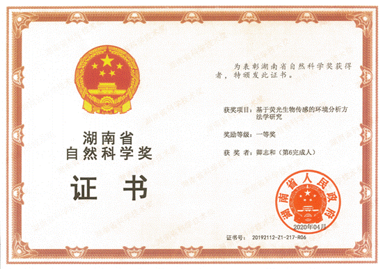 获奖等级:湖南省自然科学一等奖: