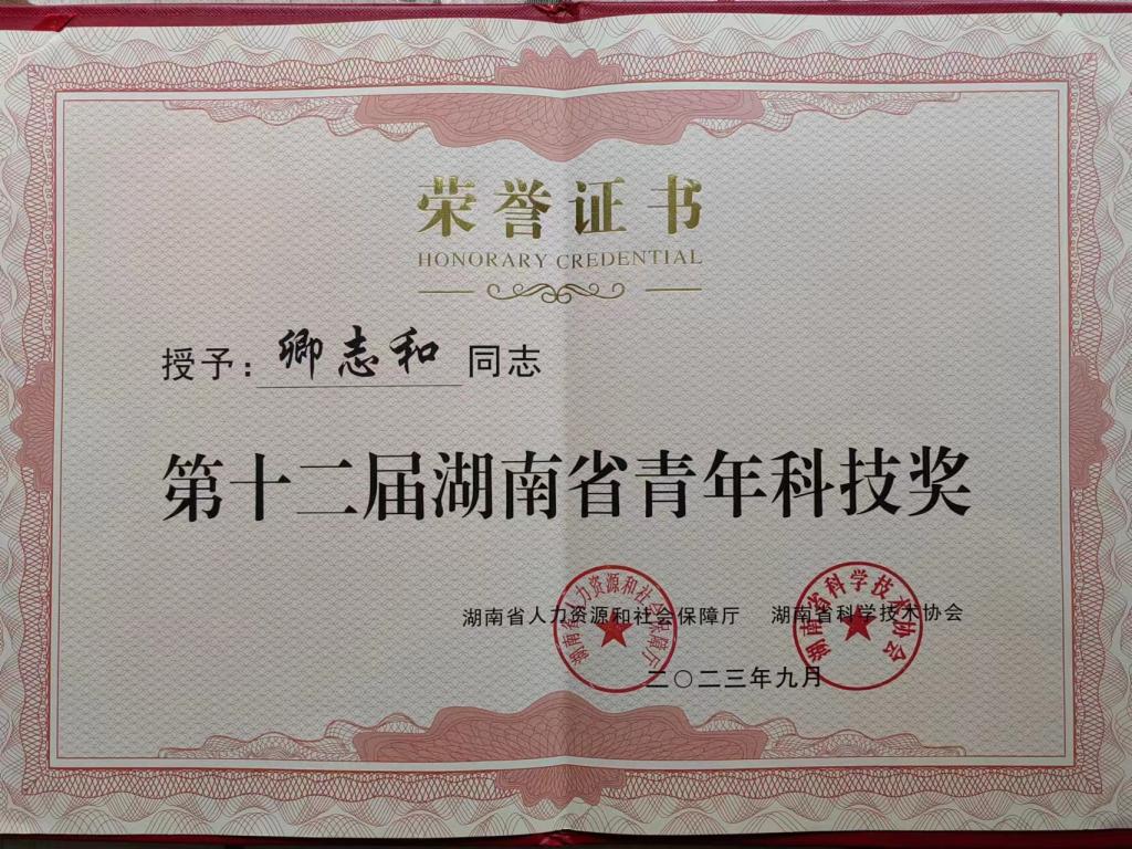 获奖等级:第十二届湖南省青年科技奖