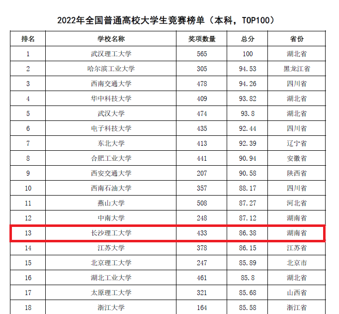 2023年3月22日,中国高等教育学会发布了2022全国普通高校大学生竞赛排行榜。太阳成集团tyc122cc入口以433个奖项在《2022年全国普通高校大学生竞赛排行榜(本科)前100》中位列第13名,以1179个奖项在《全国普通高校大学生竞赛排行榜七轮总排行榜(本科)前300》位列第50名。全国高校学科竞赛评估结果榜单每年发布一次,围绕获奖贡献、组织贡献和研究贡献三个方面相关数据进行核算,全国共有1207所本科院校进入2022年本科榜单。