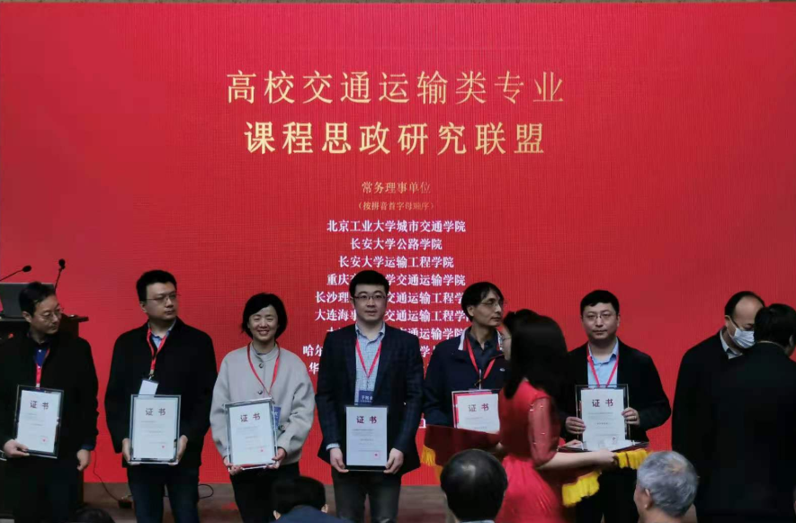 2021年4月2日,“新征程、大思政”交通运输类专业课程思政改革与创新研讨会暨高校交通运输类专业课程思政联盟第一届理事会第一次会议在同济大学召开。上海市教育科学研究院德育研究院(筹)党支部书记、主持工作副院长宗爱东,教育部交通运输类教指委副主任杨晓光,国内著名课程思政专家顾骏、张黎声,同济大学副校长童小华以及全国56所联盟高校代表参会。我校为该联盟常务理事单位,交通运输工程学院党委书记孔伟红、教师发展中心主任李珏和交通运输系党支部书记何其超等3人代表我校参会。会上童小华、宗爱东、杨晓光为联盟理事单位颁发了证书。