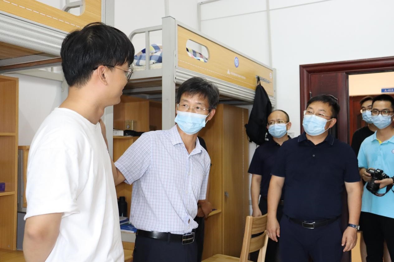 8月29日下午,交通学院党委书记刘朝辉、院长张军辉、党委副书记涂道勇、副院长高英力、专职组织员许建兰等前往敏行轩二号楼,走访慰问研究生新生。