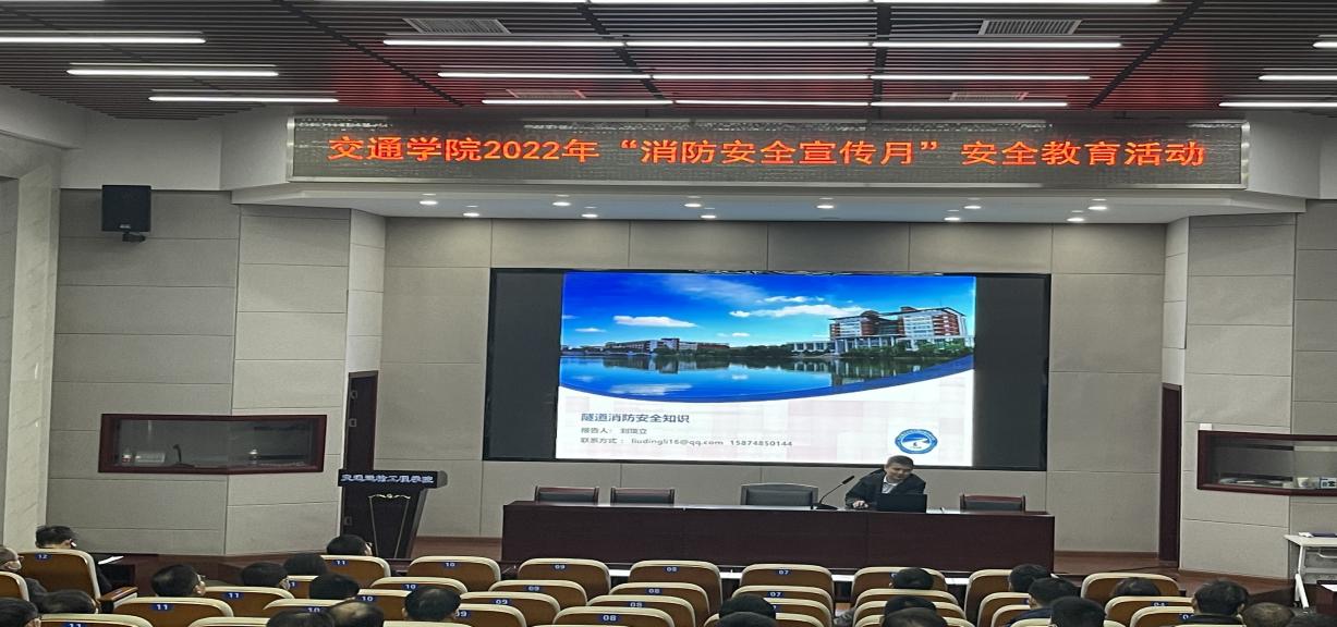 为确保学校“消防安全宣传月”实施效果,进一步加强安全教育,增强师生安全意识,提高逃生自救能力,11月15日下午,交通学院在工二B-301开展了消防安全教育活动,首先进行了消防安全知识培训,之后在工科二号楼开展了消防安全疏散演练,活动由学院吕松涛副院长主持,学院党委书记刘朝辉、院长张军辉等院领导和全院教职工参加了培训演练。