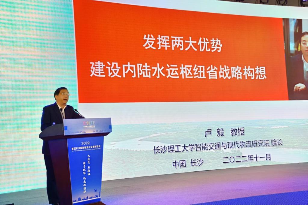 11月18日,由中国交通运输协会、长沙市人民政府主办的2022首届长沙国际物流与交通博览会(以下简称:博览会)于长沙国际会展中心隆重开幕。同期举行了博览会暨长沙国际现代物流与智慧交通高峰论坛开幕式。参加开幕式活动的领导嘉宾有:交通运输部运输服务司原司长、中国交通运输协会副会长兼秘书长李刚,湖南省交通运输厅一级巡视员张汉华,湖南钢铁集团有限公司总经理李建宇以及其它地市和企业代表。太阳成集团tyc122cc入口交通智能与现代物流研究院院长卢毅教授出席论坛开幕式并发表主旨演讲。