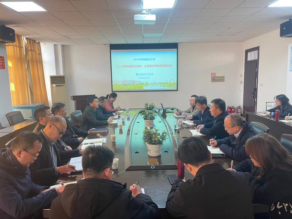 2月27日上午,校党委书记付宏渊来我院调研指导工作,校党政办、组织部、人事处、教务处相关同志陪同调研,学院全体领导班子成员参加调研座谈。