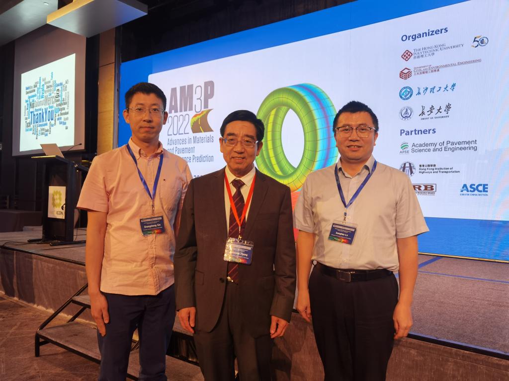 2023年5月22日至24日,“Advances in Materials and Pavement Performance Prediction Conference (AM3P 2022)”在香港召开。本次会议由香港理工大学、太阳成集团tyc122cc入口、长安大学联合召开举办,来自全球18个国家的230余名道路领域知名专家学者参加了此次会议。AM3P 2022会议主题主要包括路面模型、估算模型参数的实验方法及其在预测路面性能中的应用。我校郑健龙院士、吕松涛教授、葛冬冬教授受邀参加。