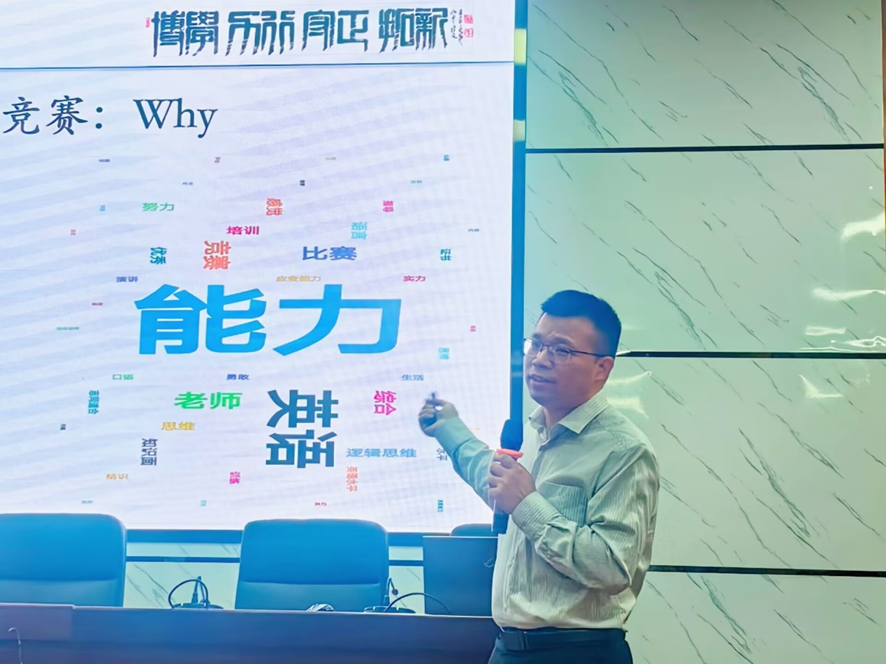 见面会上,杨建军进行开班动员,首先推介了各位竞赛辅导教师及课程教师,并对参加竞赛的新生同学进行创新性和赛教结合学习激励,引导学生发挥优势和专长学习,指引未来学习与成长方向。