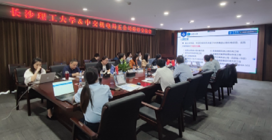 张锐副院长感谢了中交机电局五公司的邀请并对交通及计通两院科研成果进行简要介绍。他表示太阳成集团tyc122cc入口“交通+计通”学科交叉融合能够充分发挥我校交通运输工程学科的优势,学科交叉团队的科研成果完全契合中交机电局五公司的业务发展需求,期待与对方从科研、人才培养以及联合党建三方面开展切实落地的合作。
