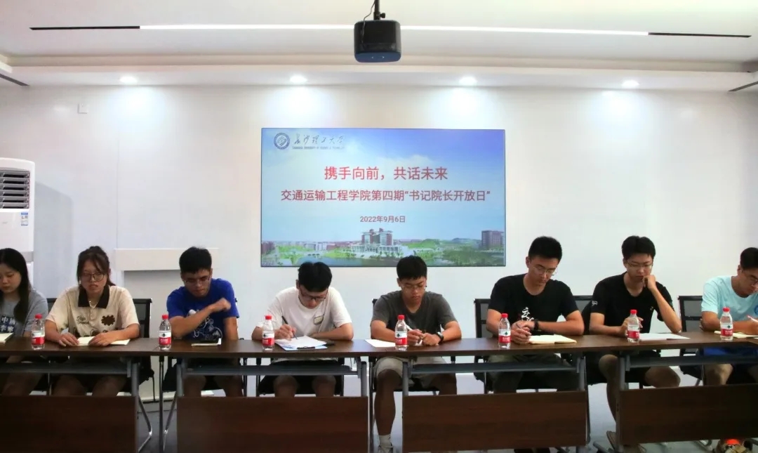 为深入了解同学们的思想动态,倾听同学们的心声,9月6日下午,交通学院第四期书记院长开放日座谈会于云塘校区交通青年学生社区一站式服务大厅举行。座谈会由学院党委副书记涂道勇主持,学院党委书记刘朝辉、院长张军辉出席,共18名学生参加。