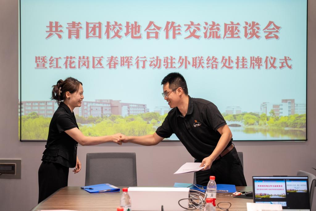 随后,陆浪、陈璐莎共同为学生代表熊冠智举行驻外工作联络处授牌仪式。熊冠智表示将积极参与到家乡的社会实践中,并鼓励更多学生加入此类活动,共同推动家乡的发展。