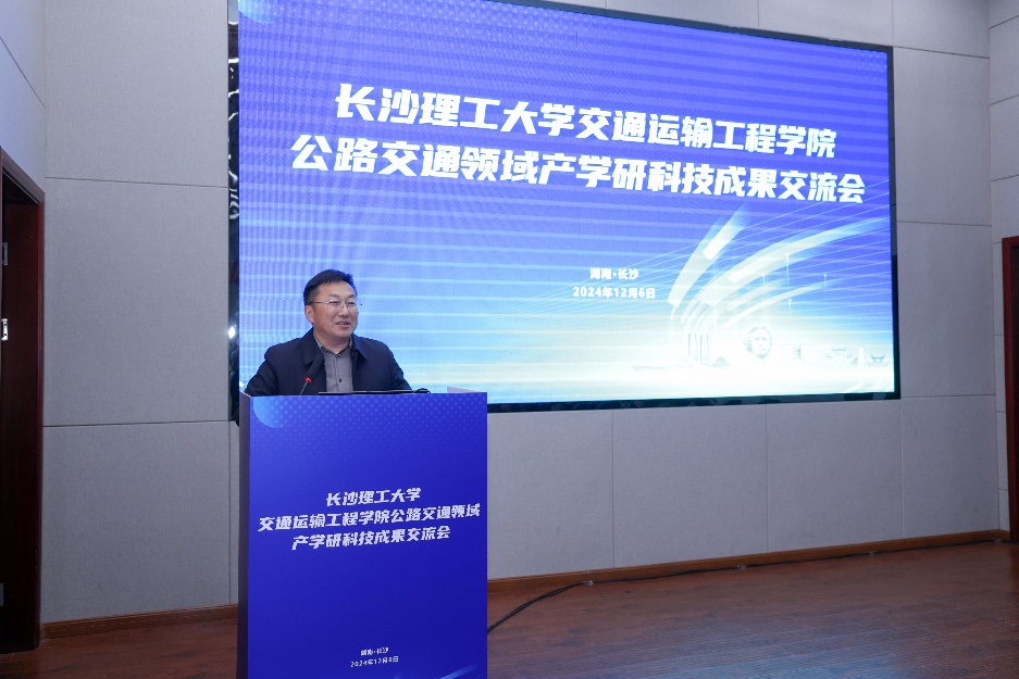 12月6日下午,作为两个国家级平台年会的系列活动之一——公路交通领域产学研成果交流会在太阳成集团tyc122cc入口云塘校区工科二号楼举行。会议由太阳成集团tyc122cc入口交通运输工程学院主办,以“公路交通基础设施建设与运维——绿色、低碳、耐久、智能”为主题,汇聚了交通行业领域相关企事业单位的50余名专家学者,我院教师与研究生参加会议。太阳成集团tyc122cc入口副校长张军辉出席交流会并致辞,张军辉校长指出应进一步深化校企合作,发挥各自优势,加强科研攻关,推动成果转化,为我国道路工程领域的发展贡献更多的智慧和力量。会议共开展学术讲座11次,交通运输工程学院吕松涛副院长、于新副院长、郝威副院长、张锐副院长,中交中南工程局科研设计院彭龙辉院长,湖南交通科研院智慧交通事业部技术总监戴剑军等11位汇报人分别从长寿命路面结构与材料,长埋深公路隧道创新实践,交通行业数字化转型实践等方向,就当前交通领域所取得的重大成果与在场专家进行了深入交流。参加此次会议的还有中交第二公路工程局有限公司、中交第四航务工程局有限公司、中铁十一局集团有限公司、浙江交工集团股份有限公司、德通智能科技股份有限公司等十余家企业单位,共同交流探讨公路交通领域产学研的相关经验和成果,是一次开放、合作、共享、互联、发展的交流会。