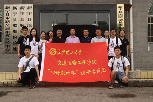 为加强基础设施建设,确保脱贫工作任务圆满完成,新宁县交通局推行“四好农村路”建设计划。7月11日下午,院领导带领8名学生一起来到新宁县交通局,为帮助实施四好农村路建设开展前期调研,由我院8名学生组成的实践队将开展为期半个月的实践活动。院领导对实践队开展调研提出了希望和要求,马玉文老师对学生开展调研进行了安排部署,王佳老师为同学们开展调研予以指导并提出具体的方法和方向。实践队的调研资料,将为新宁县交通局建设“四好农村路”、探索建立农村公路养护机制提供有效依据。(文图/李金莲 审/何忠明)
