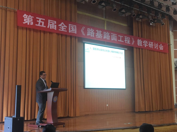 此次研讨会以《路基路面工程》和《道路建筑材料》课程教学问题调查征询为基础,东南大学黄晓明教授、哈尔滨工业大学谭忆秋教授、长安大学申爱琴教授等全国具有丰富教学经验的教授围绕《路基路面工程》和《道路建筑材料》课程的教学理念、教学内容、教学方法、教学经验等进行了大会报告,并与参会教师进行了研讨。交通学院赵锋军副教授也出席并作了“路基边坡稳定性分析方法及适用场合”的专题报告。